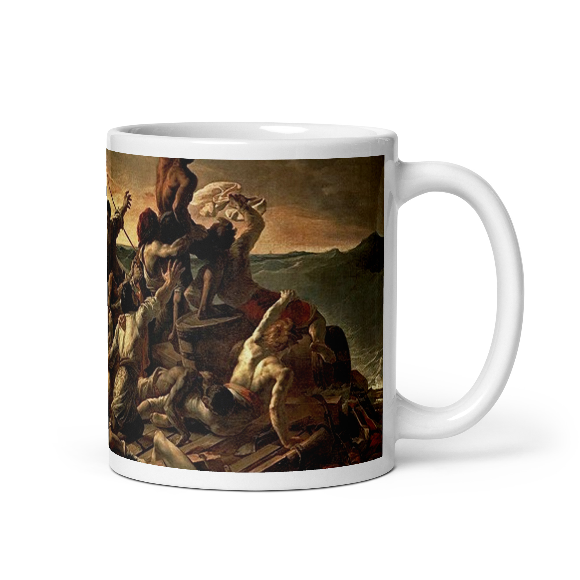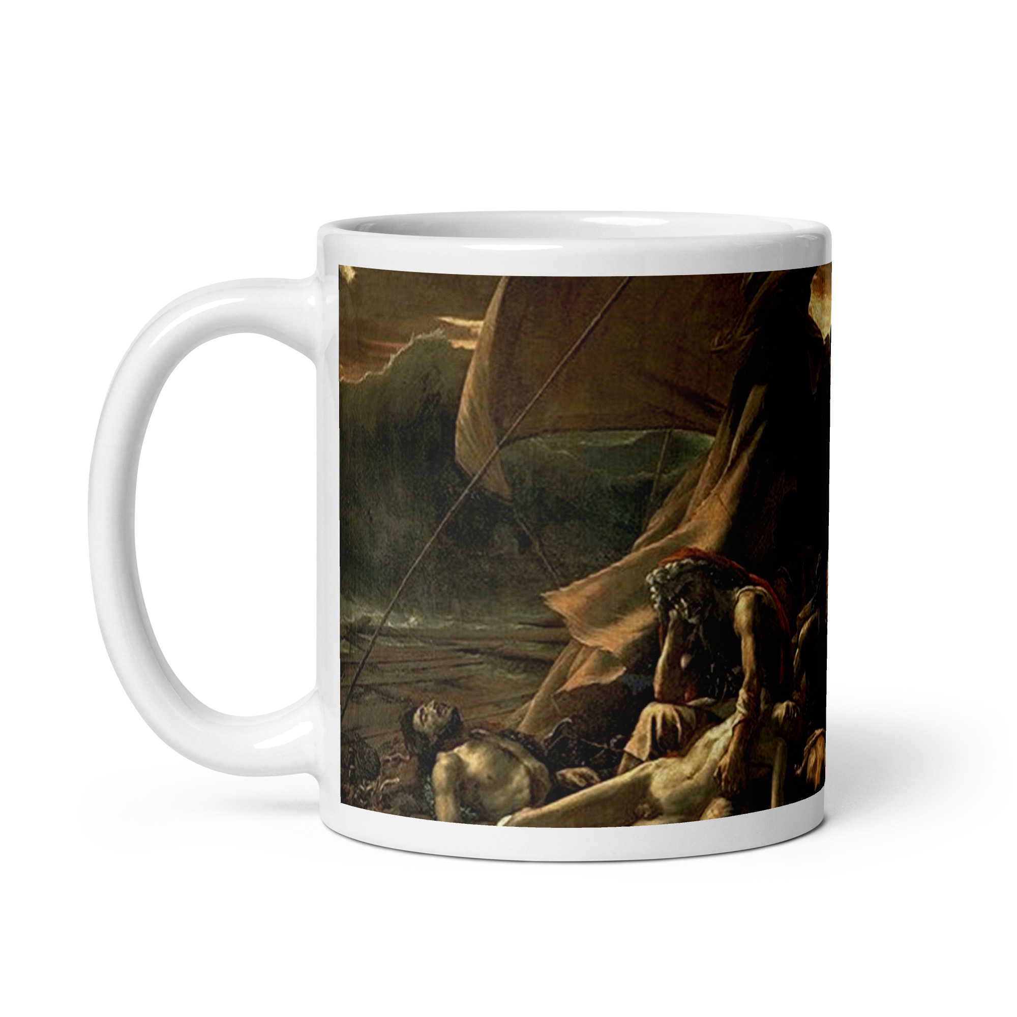 Disfruta tu café o té con una de las obras más impactantes y monumentales del Romanticismo con esta poderosa taza artística inspirada en “La balsa de la Medusa” de Théodore Géricault. Una pieza que une historia, drama y belleza clásica, ideal para amantes del arte, coleccionistas y admiradores de la pintura romántica francesa.