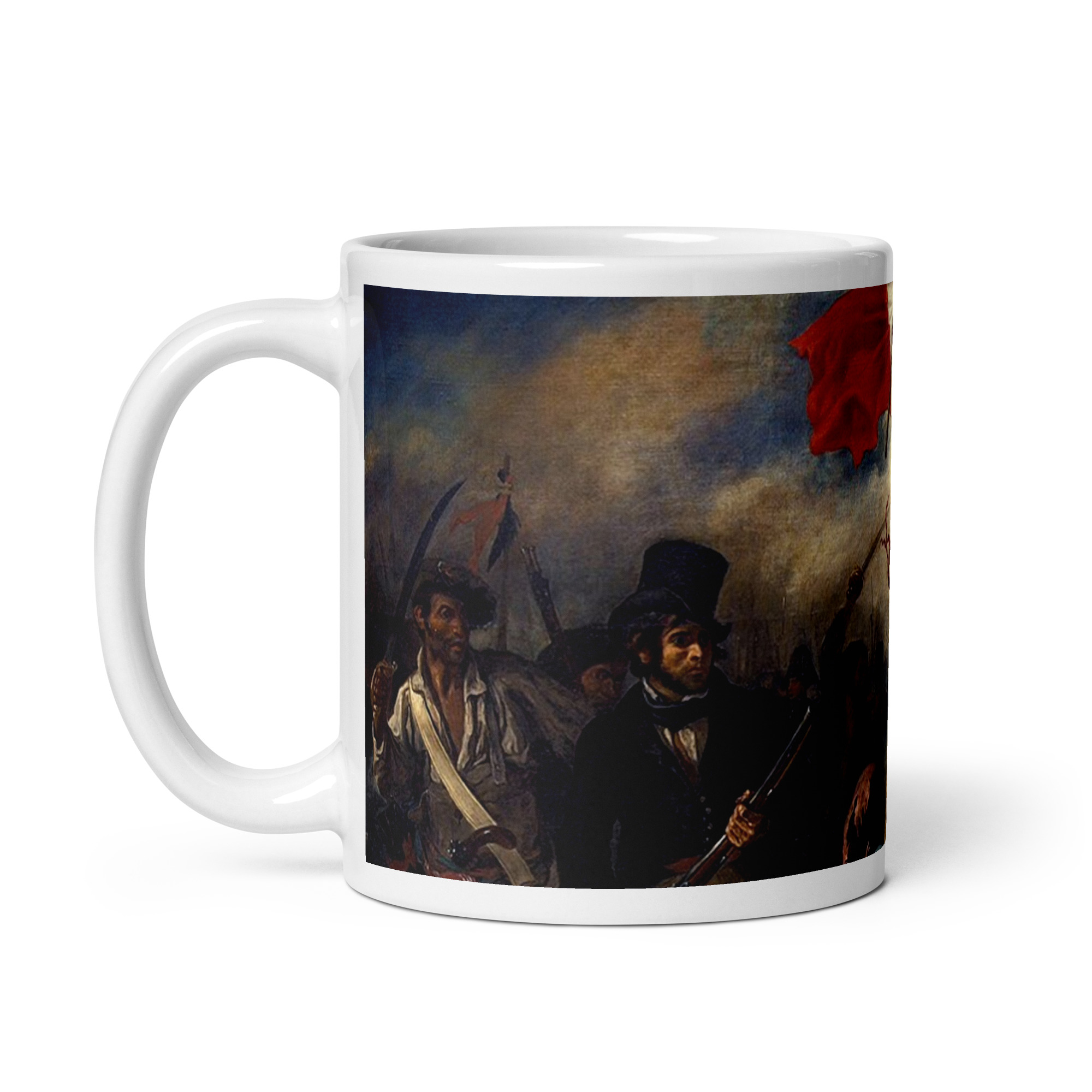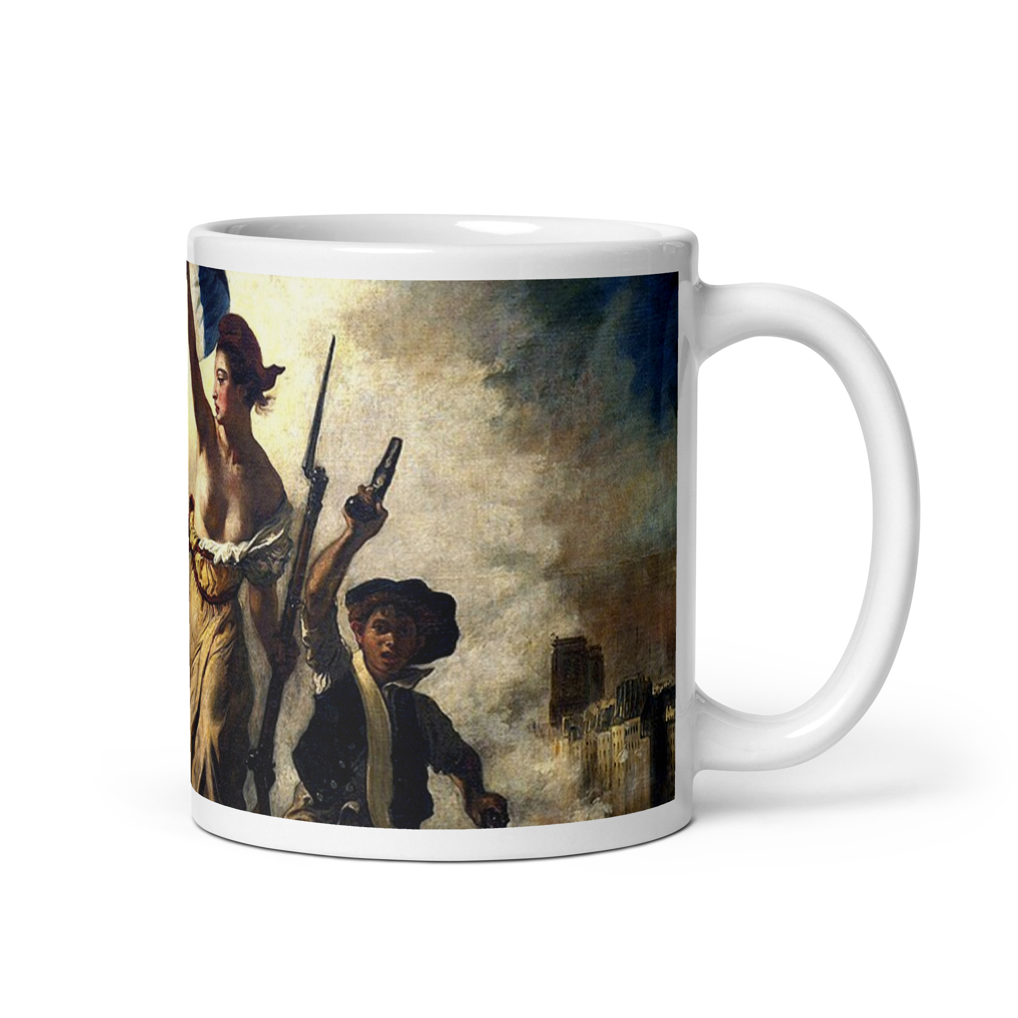 Disfruta tu café o té con una de las imágenes más emblemáticas del Romanticismo y de la historia del arte europeo con esta poderosa taza artística inspirada en “La libertad guiando al pueblo” de Eugène Delacroix. Una pieza que une energía, simbolismo y belleza clásica, ideal para amantes del arte, coleccionistas y admiradores del Romanticismo francés.