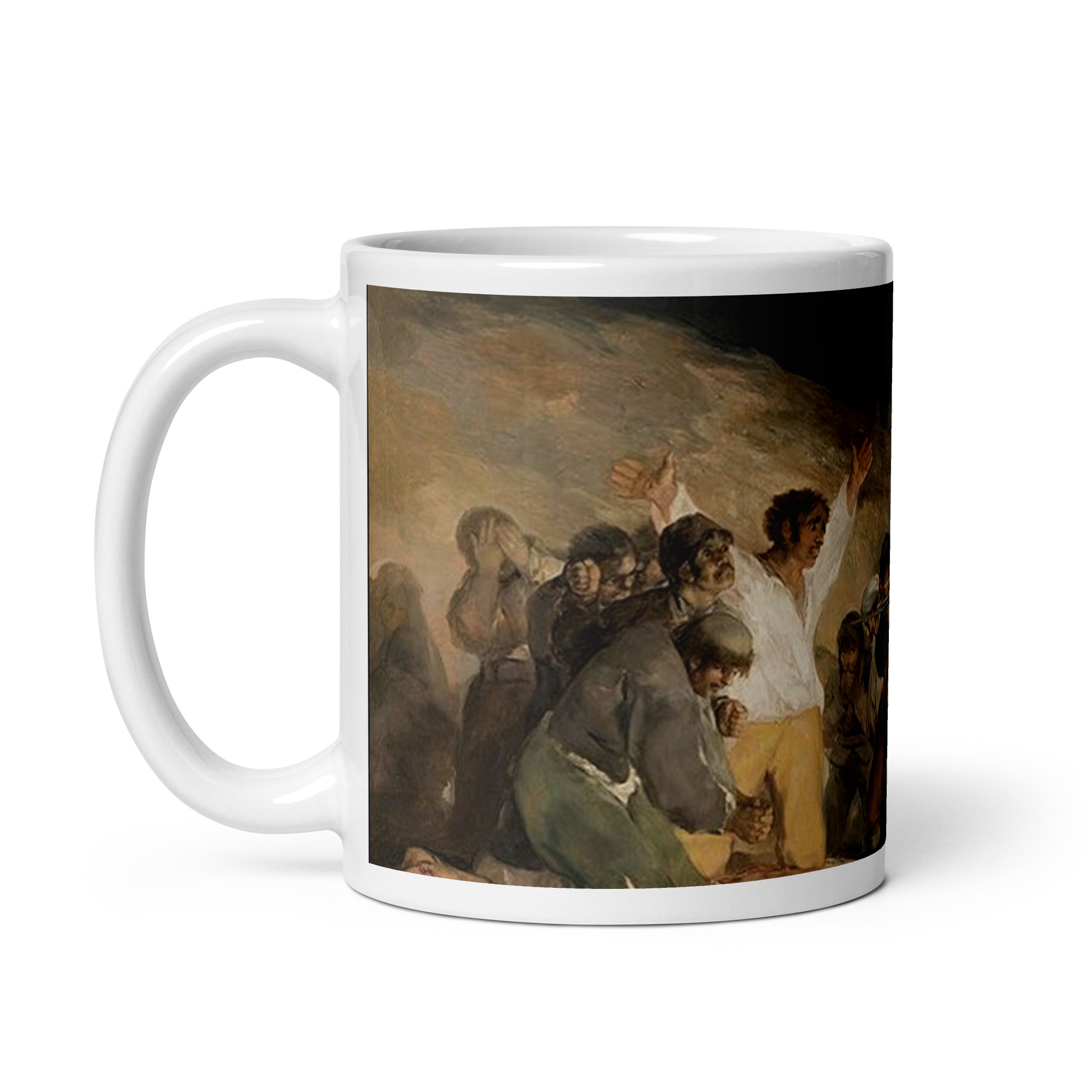 Disfruta tu café o té con una de las obras más poderosas y conmovedoras de la pintura española con esta impactante taza artística inspirada en “Los fusilamientos del 3 de mayo” de Francisco de Goya. Una pieza que une historia, emoción y profundidad artística, ideal para amantes del arte clásico, coleccionistas y admiradores del Romanticismo y la pintura histórica española.