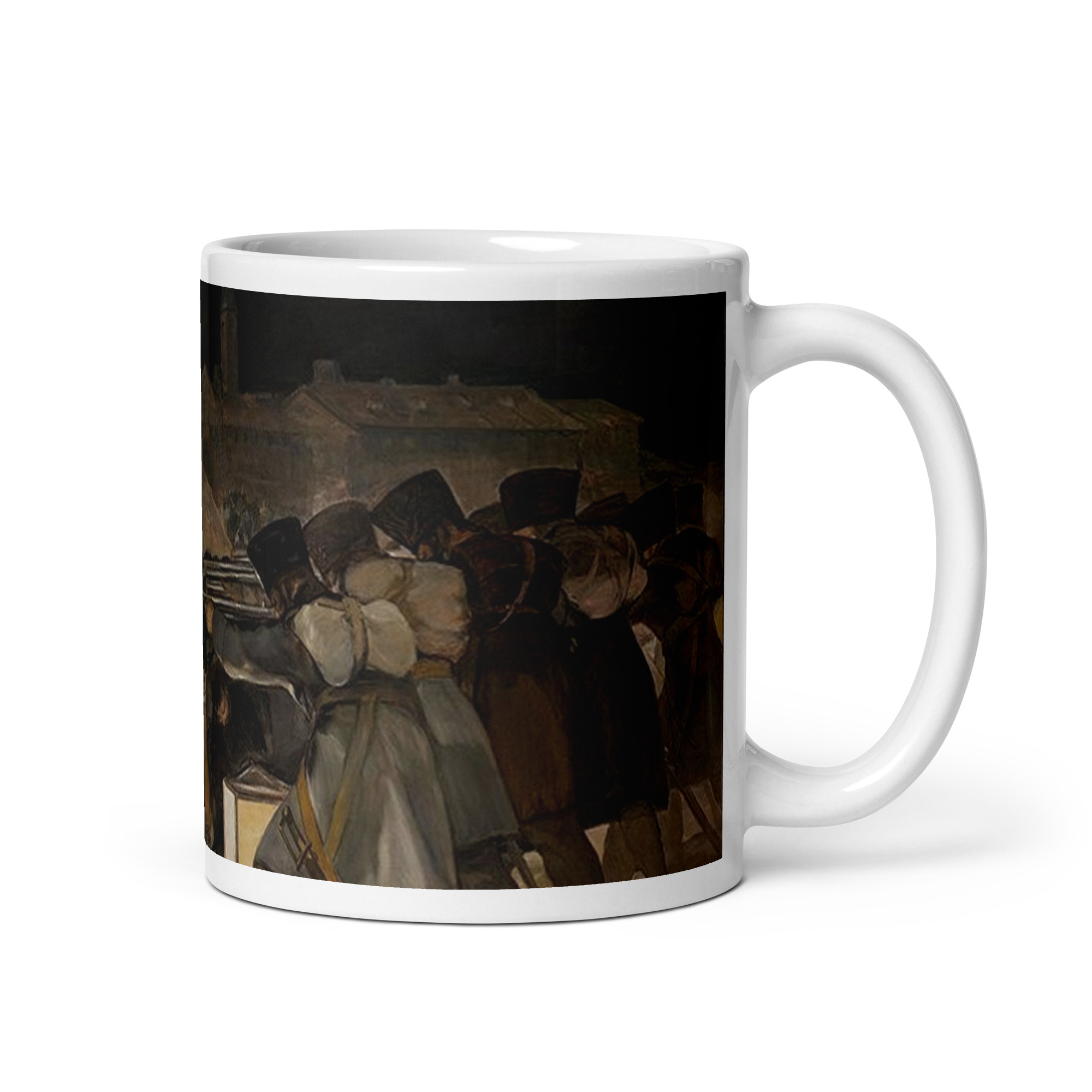 En esta obra maestra, Goya retrata con una intensidad extraordinaria un momento de violencia y tragedia, convirtiéndolo en una denuncia visual universal contra la brutalidad de la guerra. La luz dramática, el contraste entre víctimas y soldados, y la expresividad del personaje central crean una composición inolvidable, cargada de humanidad y significado. Esta taza decorativa de arte transforma un gesto cotidiano en una experiencia cultural y reflexiva, ideal para quienes valoran el arte con mensaje y memoria histórica.