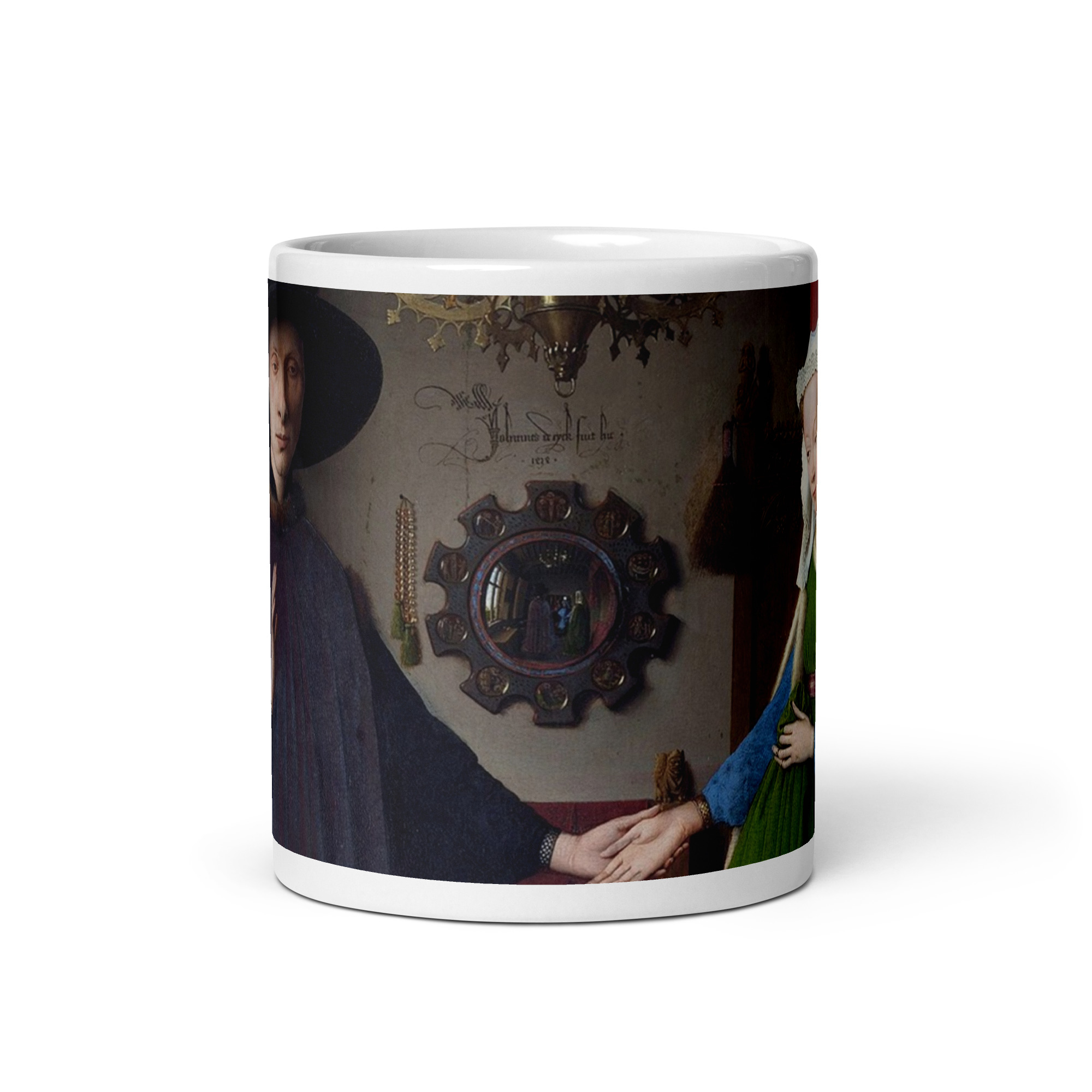 Disfruta tu café o té con una de las obras más fascinantes y detalladas de la pintura europea con esta elegante taza artística inspirada en “El matrimonio Arnolfini” de Jan van Eyck. Una pieza que une historia, simbolismo y belleza atemporal, ideal para amantes del arte clásico, coleccionistas y admiradores del arte flamenco del siglo XV.